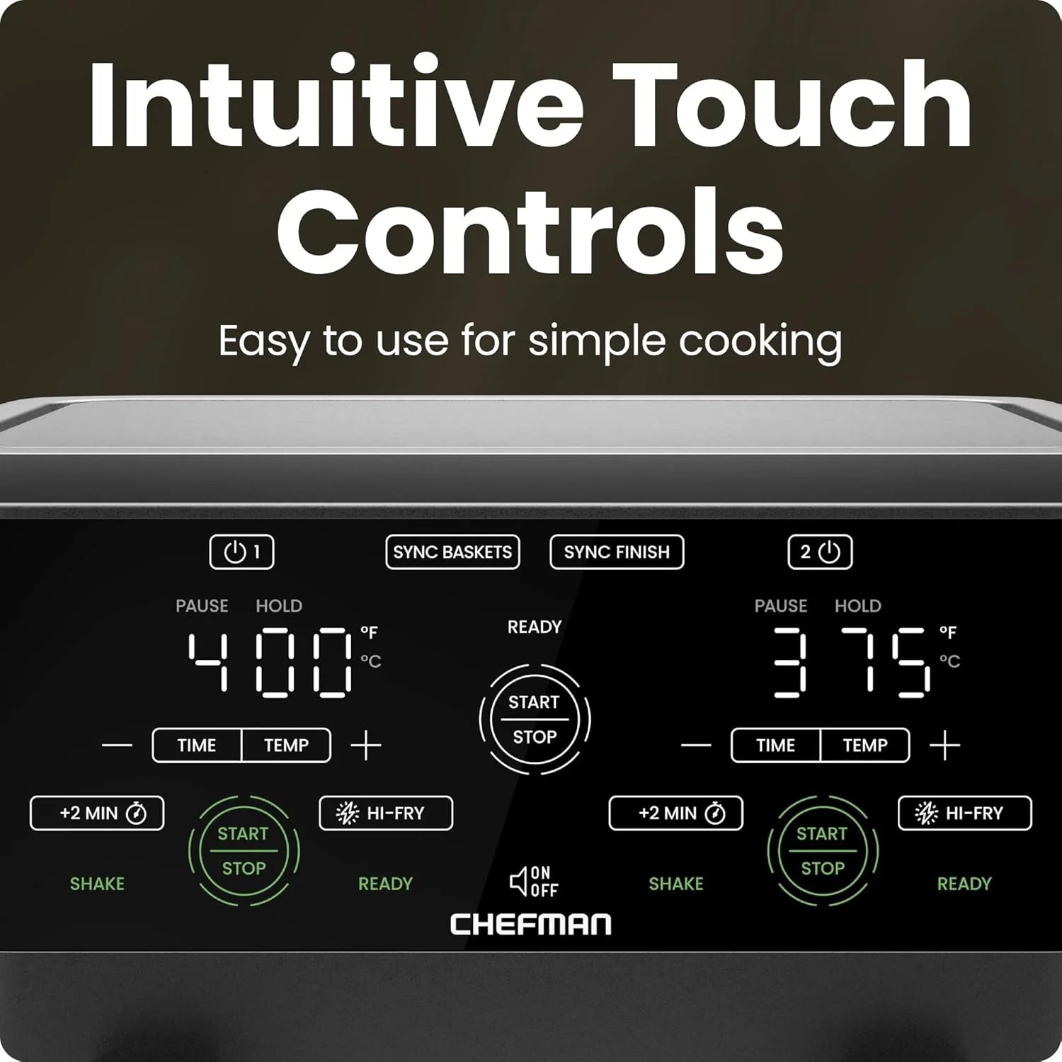 La friggitrice ad aria Chefman da 6 litri con doppio cestello e finestra Easy View utilizza due padelle antiaderenti separate da 3 litri