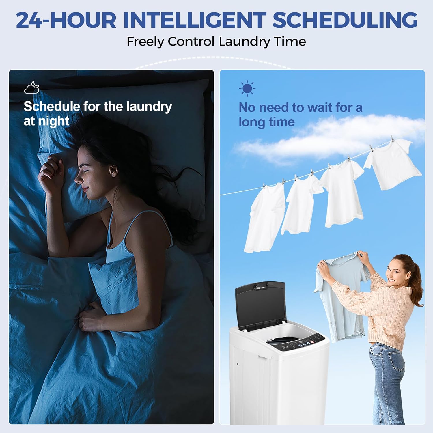 Lavatrice portatile da 20 libbre, lavatrice e asciugatrice da 2,8 piedi cubi con pompa di scarico, 10 programmi, 8 livelli d'acqua, lavatrice compatta per casa, appartamento, camper, dormitori