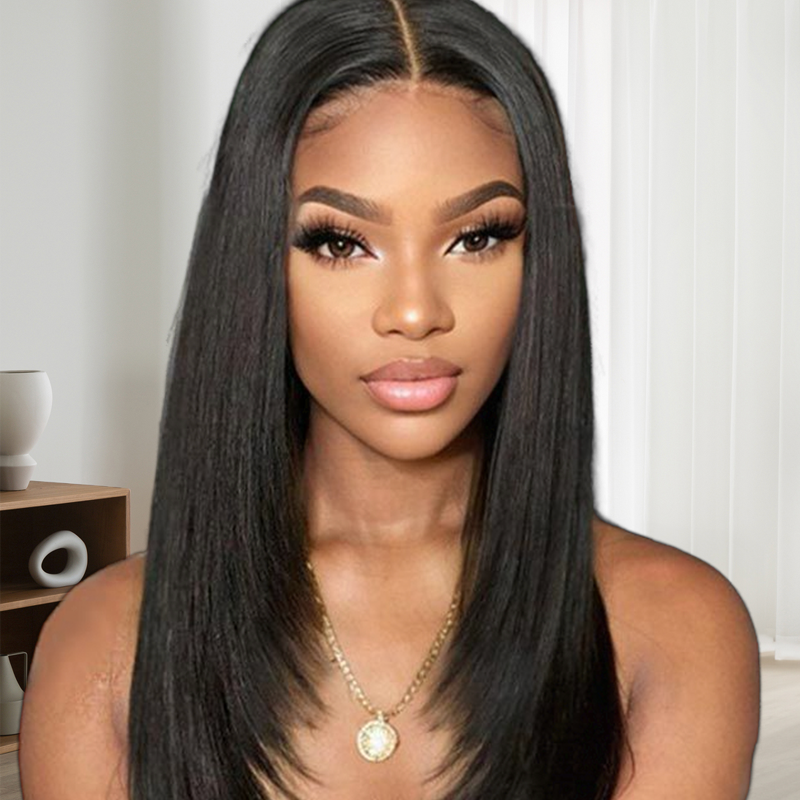 Parrucca frontale in pizzo di capelli umani con taglio dritto a strati senza colla