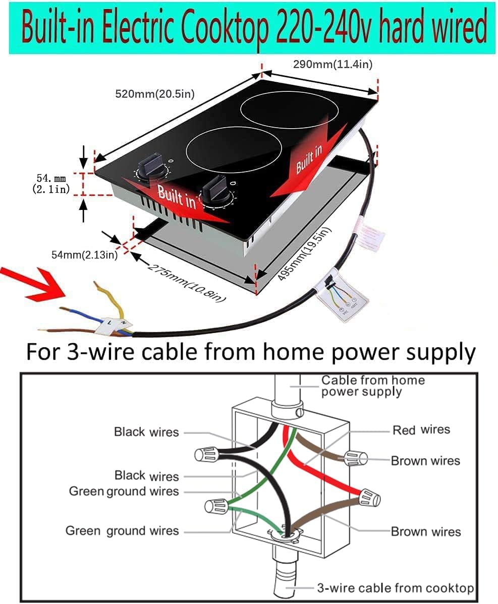 Il piano cottura elettrico da 220 V-240 V non ha spina e richiede un cablaggio professionale. Il cablaggio è semplice, consulta il nostro schema elettrico. Se il vetro è rotto o si verifica un problema, ti preghiamo di informare tempestivamente il venditore per aiutarti a risolverlo.