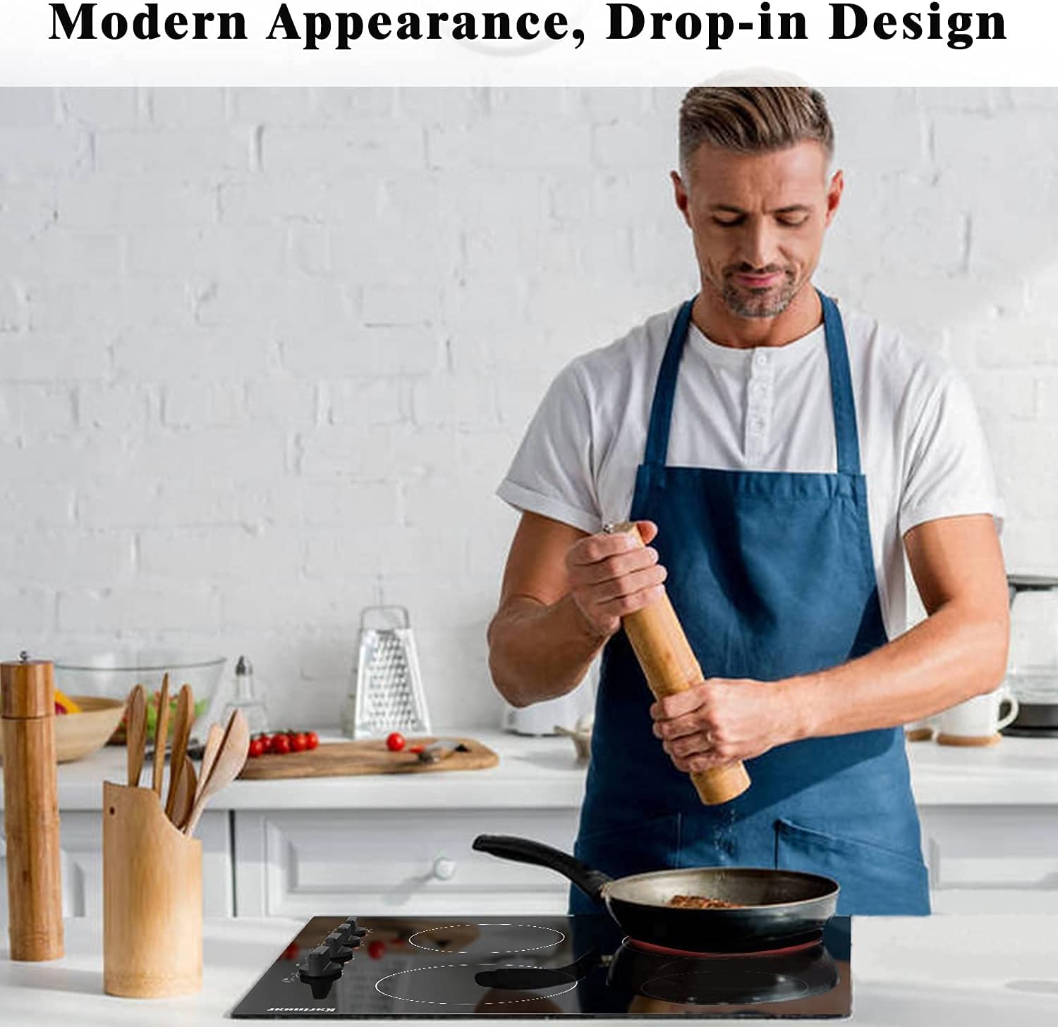 - 【Piano cottura elettrico a 4 fuochi con controllo a manopola】Nessun pulsante complicato, facile da usare e da usare. Questo tipo di piano cottura elettrico con controllo a manopola è molto adatto agli anziani, adatto a persone con problemi di vista. Molte persone anziane non sanno come usare altri piani cottura touch con sensore e la loro vista non riesce a vedere i piccoli pulsanti. Quindi hanno più bisogno di un piano cottura elettrico con controllo a manopola, che sia più comodo da usare.