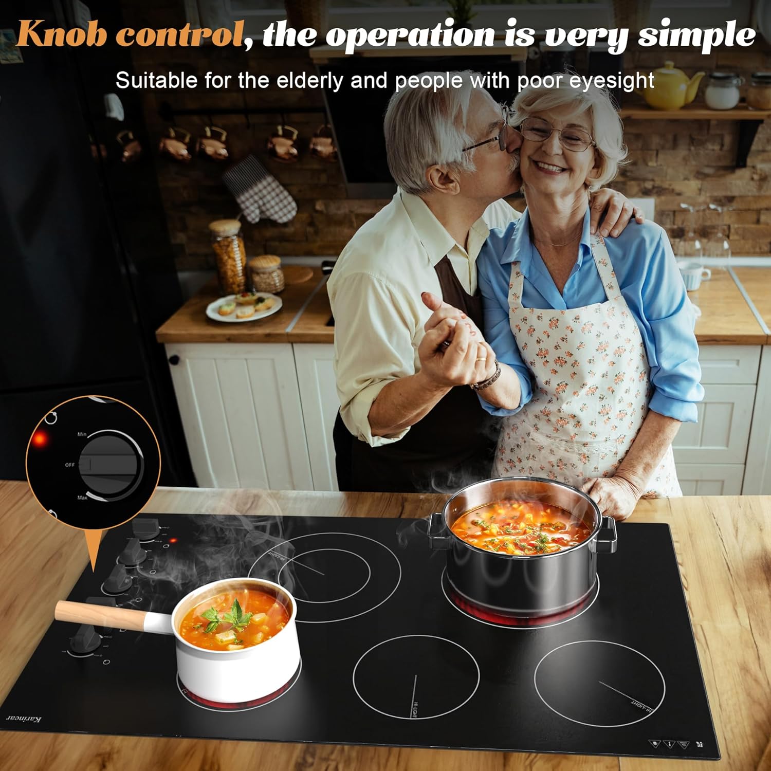 Gli anziani e le persone con problemi di vista hanno davvero bisogno di questo tradizionale piano cottura elettrico con manopola da 30''. Non sanno come usare altri piani cottura con sensore touch e la loro vista non riesce a vedere i piccoli pulsanti. Nessun pulsante complicato, il piano cottura in ceramica con manopola Karinear è facile da usare e da usare.