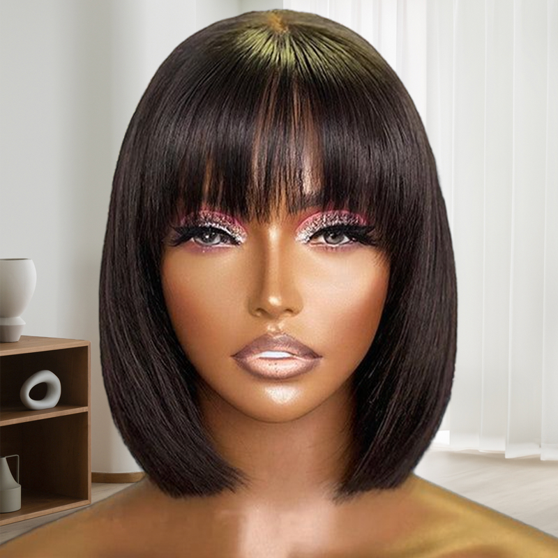 Parrucca Bob senza colla con taglio corto e frangia in capelli umani