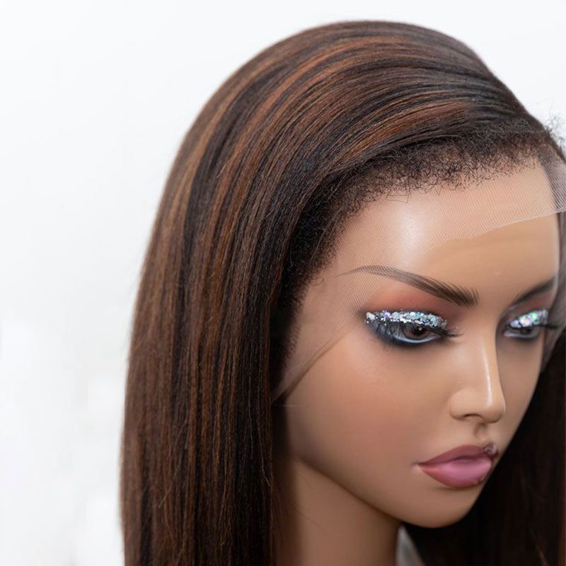 Parrucche frontali in pizzo con capelli umani lisci e castani senza colla