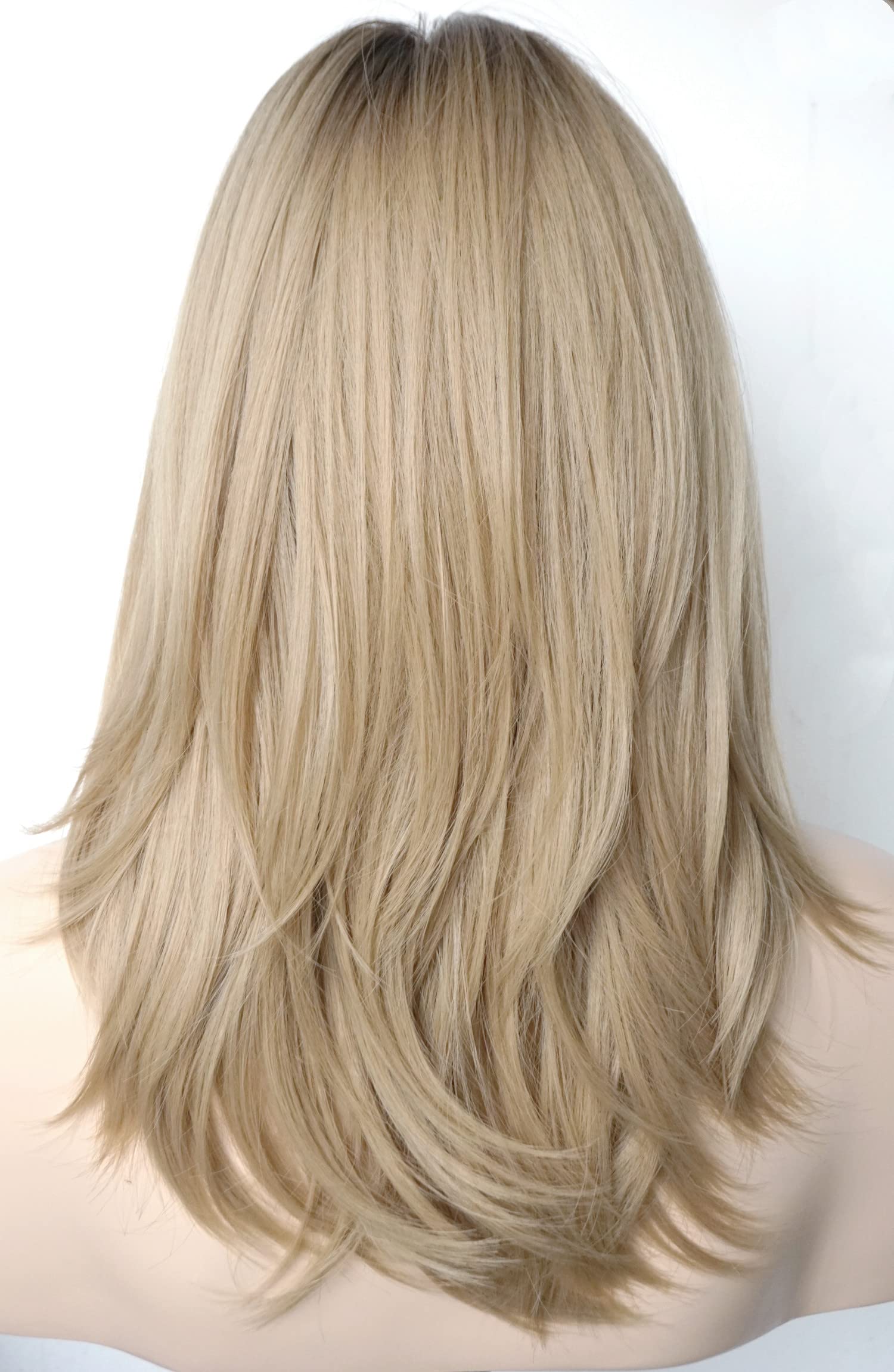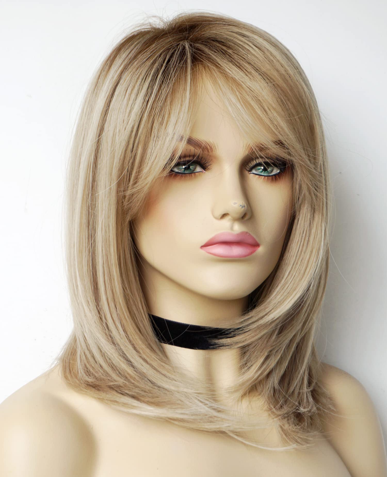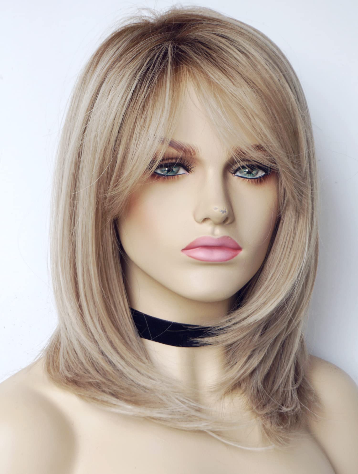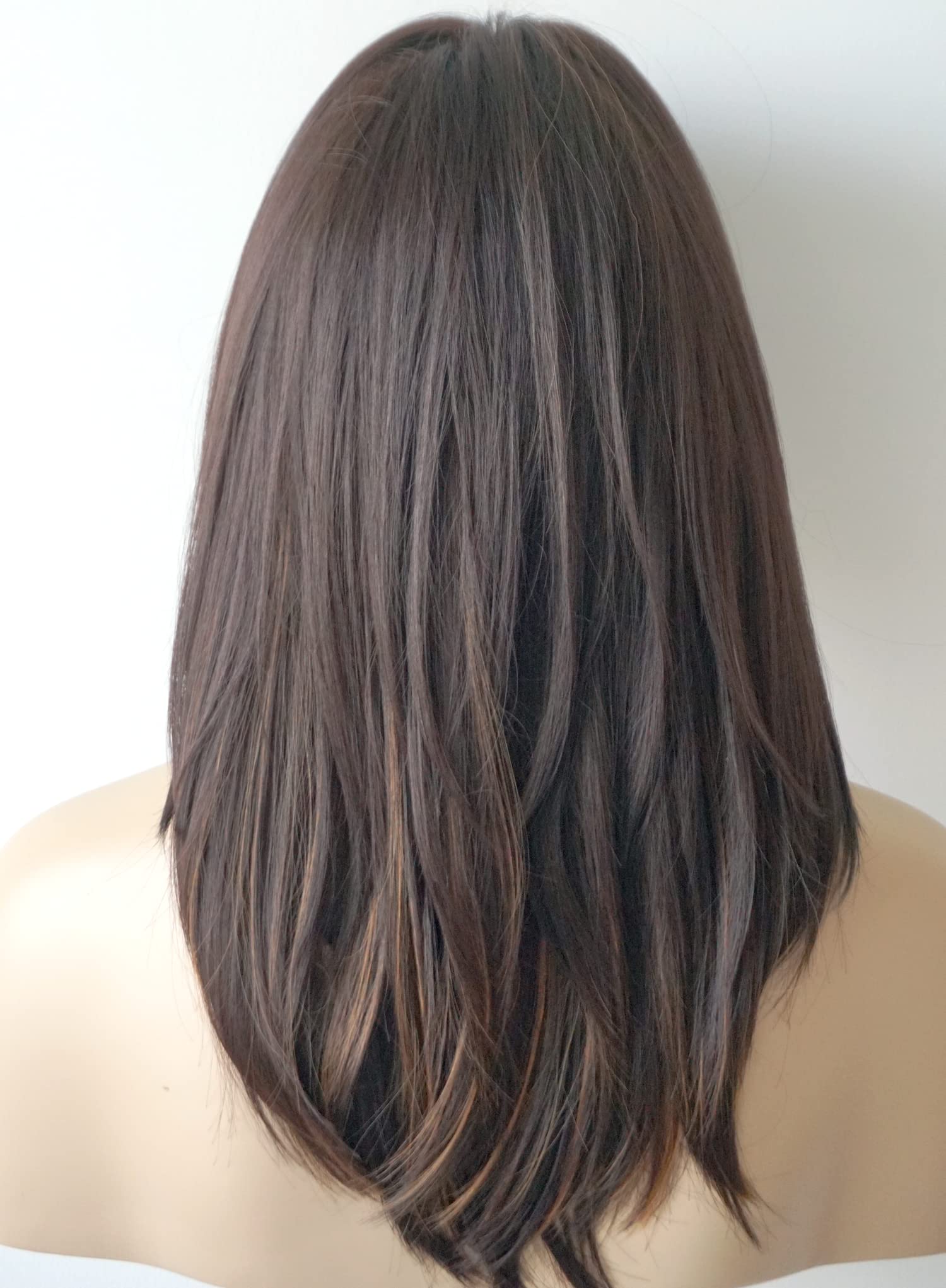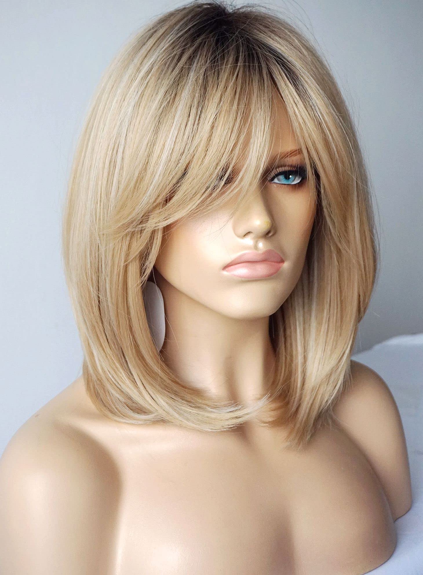 Parrucche da donna per donne bianche Parrucca di media lunghezza Parrucche a strati Colore castano chiaro con frangia Parrucca sintetica per donne