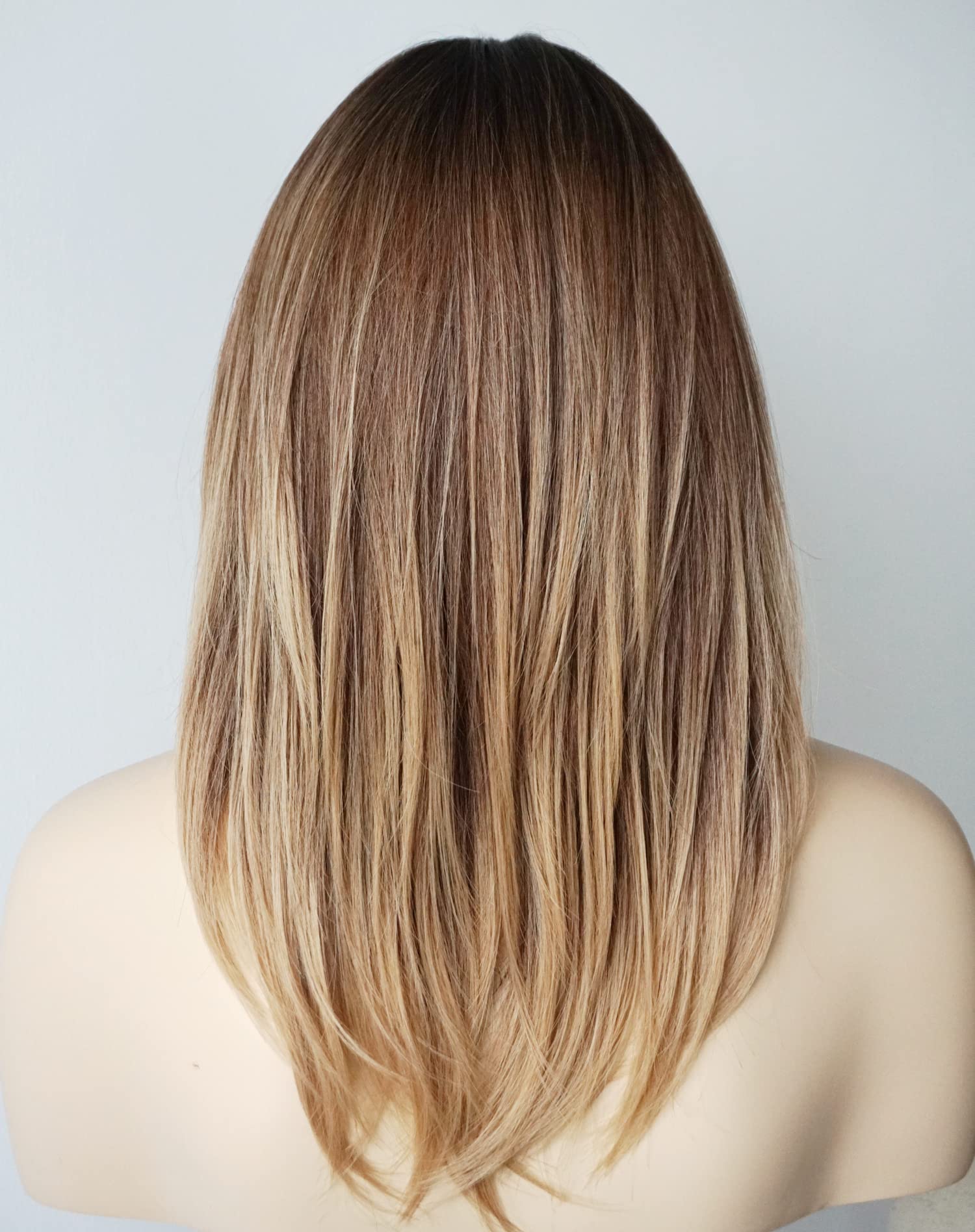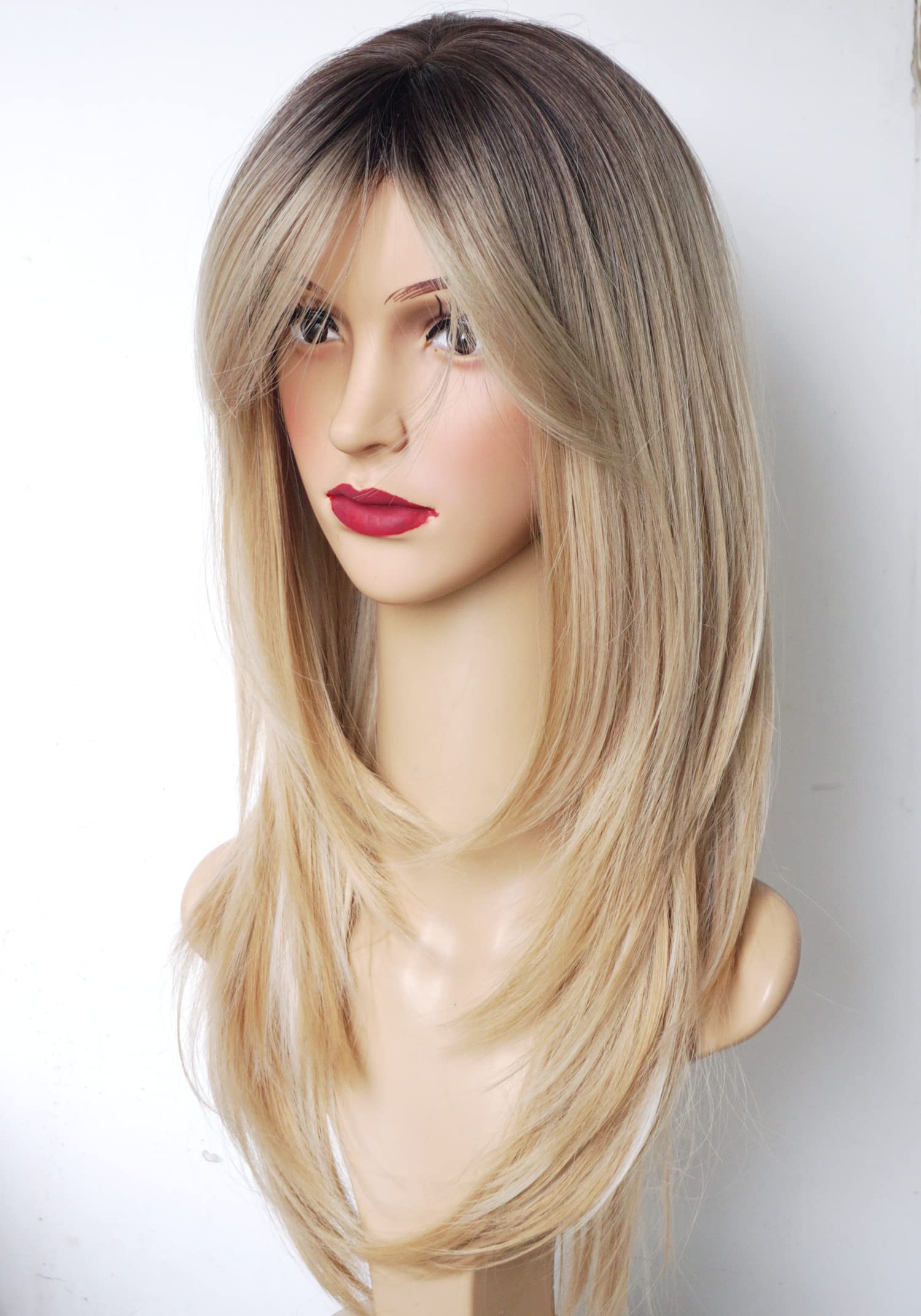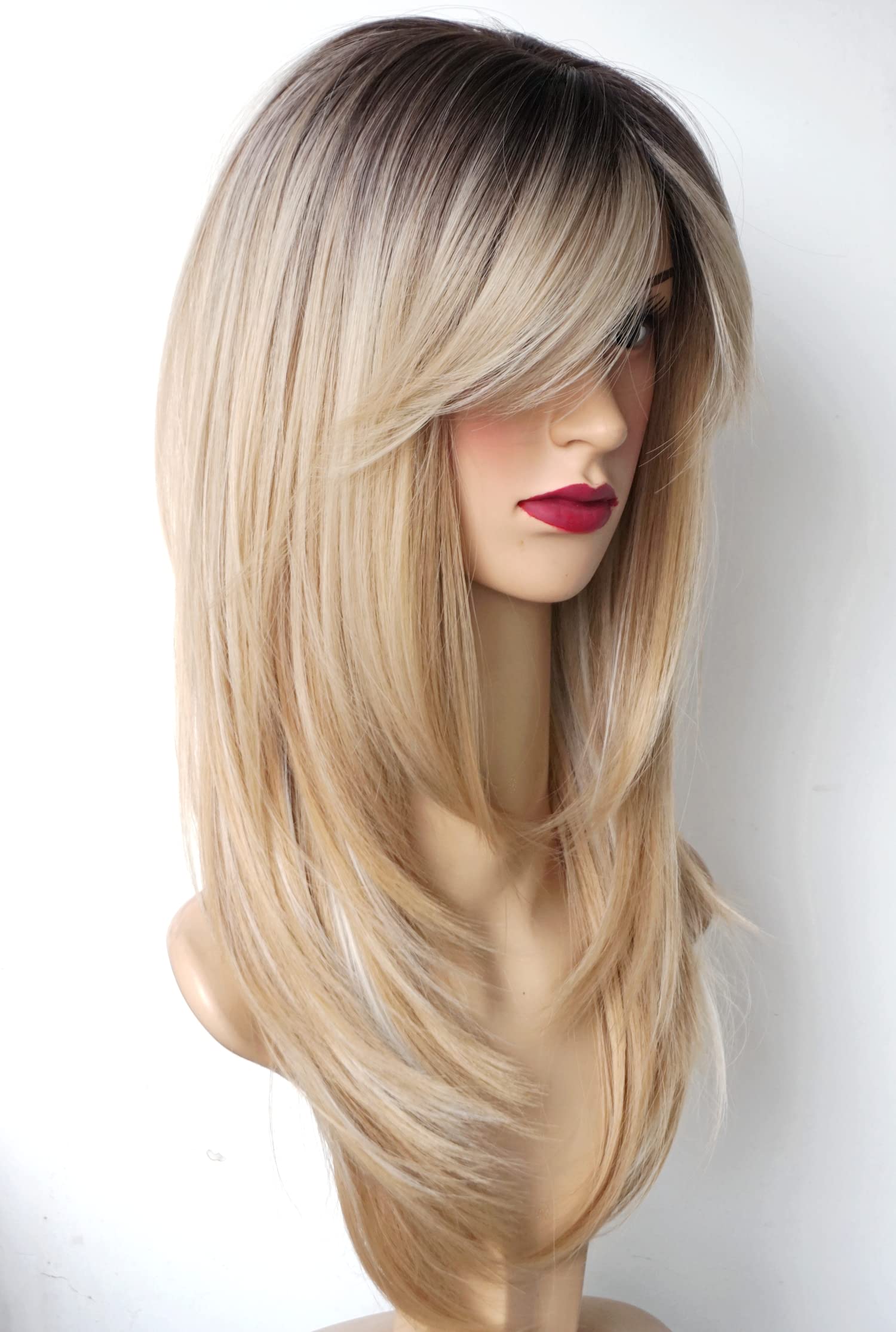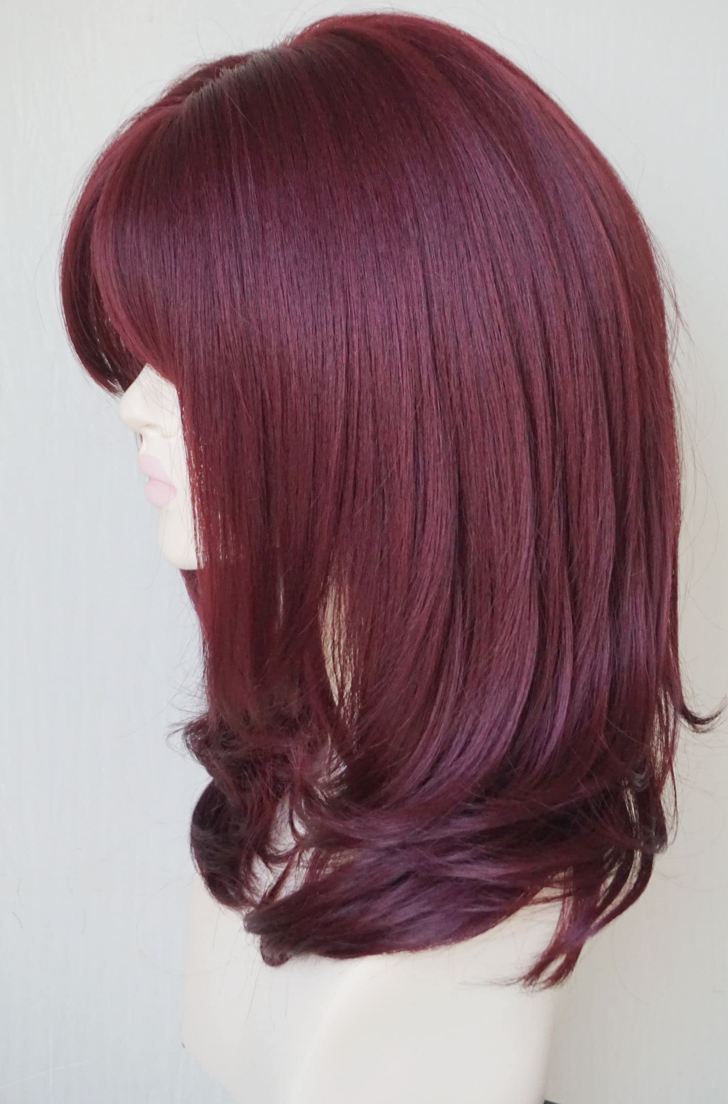Parrucche da donna per donne bianche Parrucca di media lunghezza Parrucche a strati Colore castano chiaro con frangia Parrucca sintetica per donne