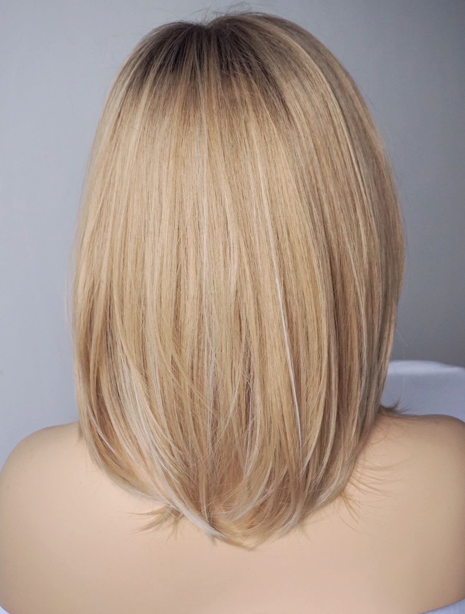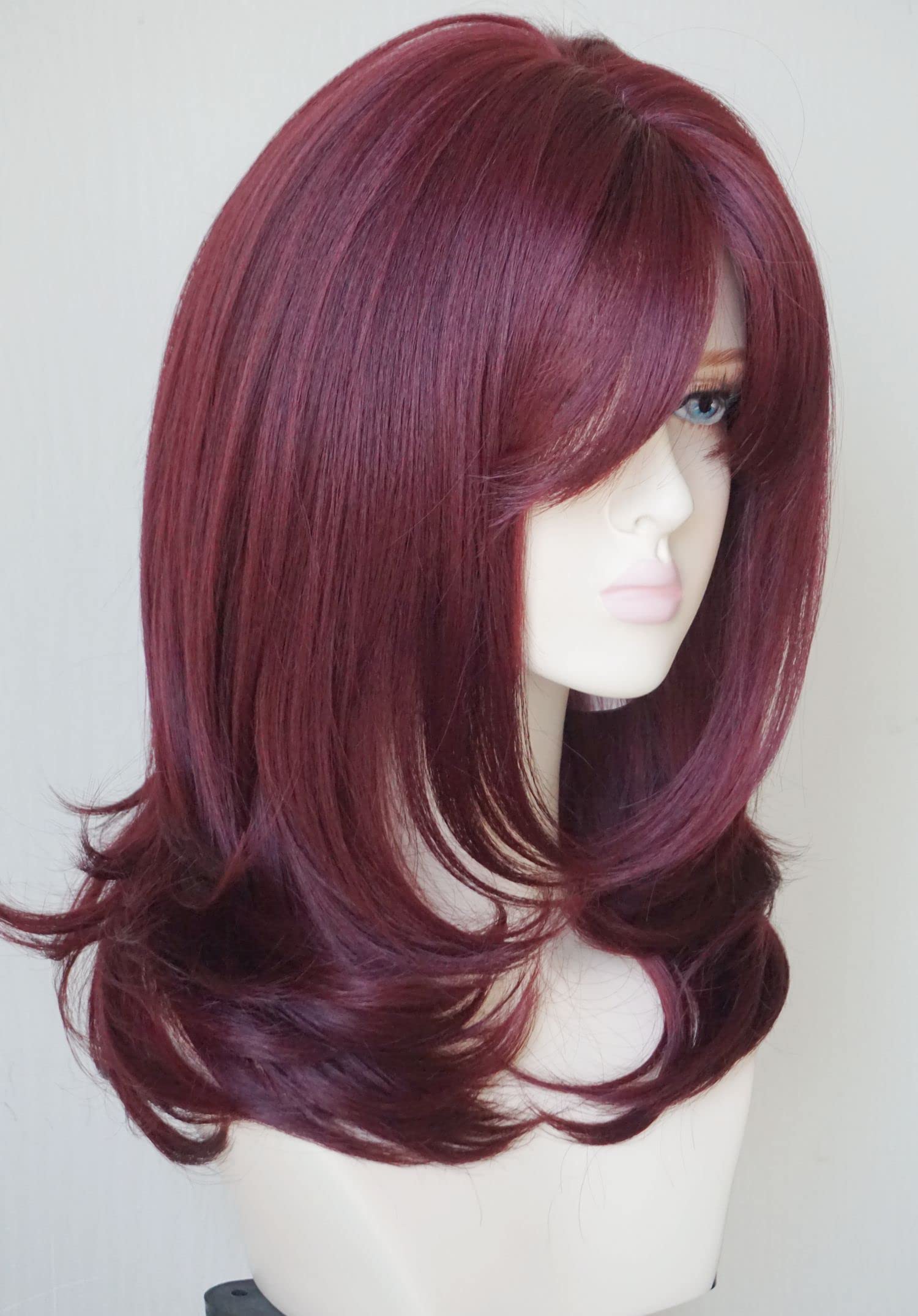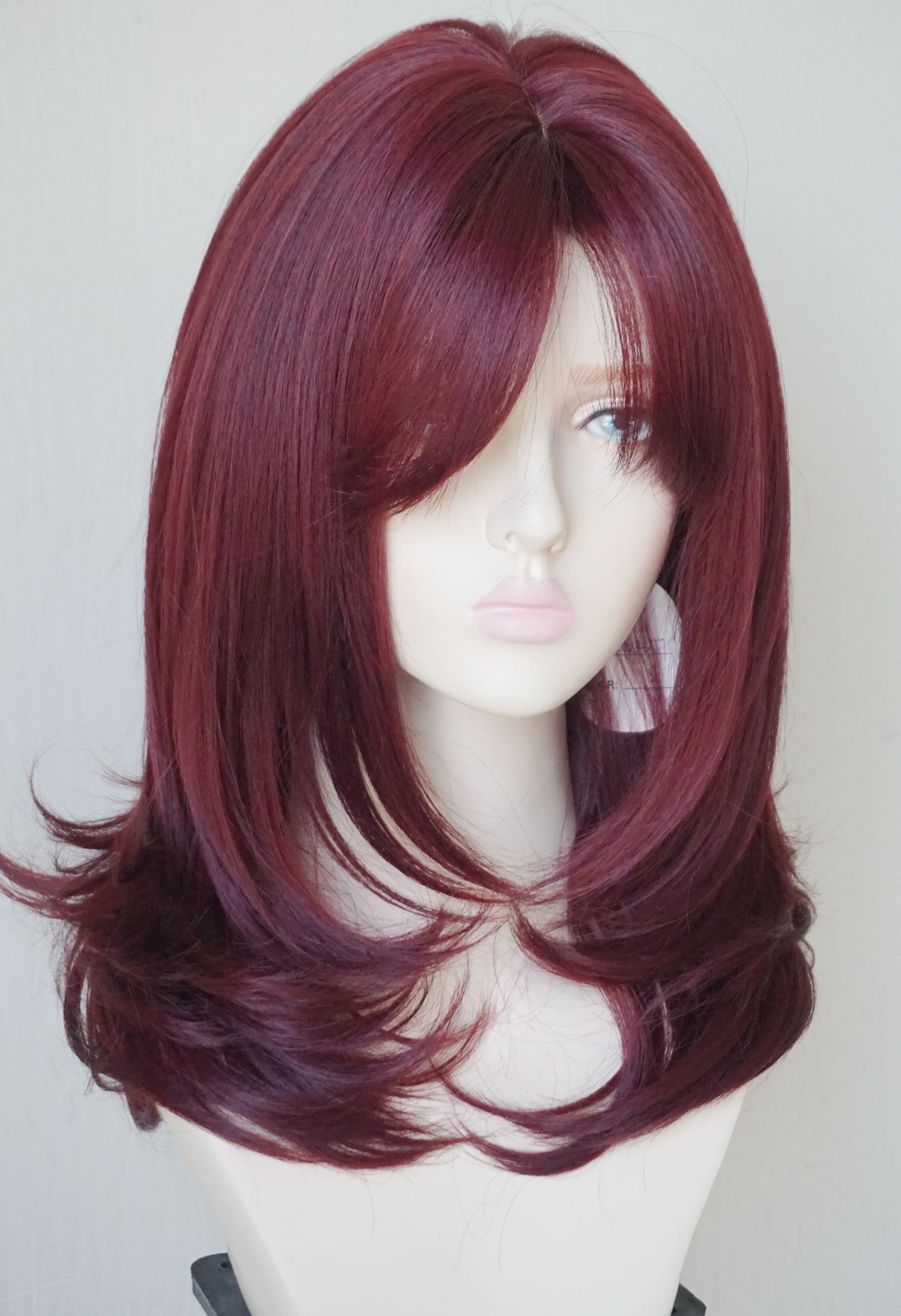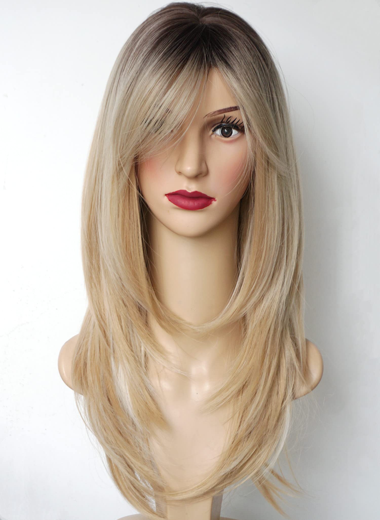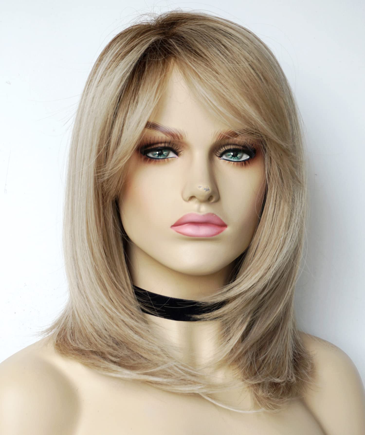 Parrucche da donna per donne bianche Parrucca di media lunghezza Parrucche a strati Colore castano chiaro con frangia Parrucca sintetica per donne