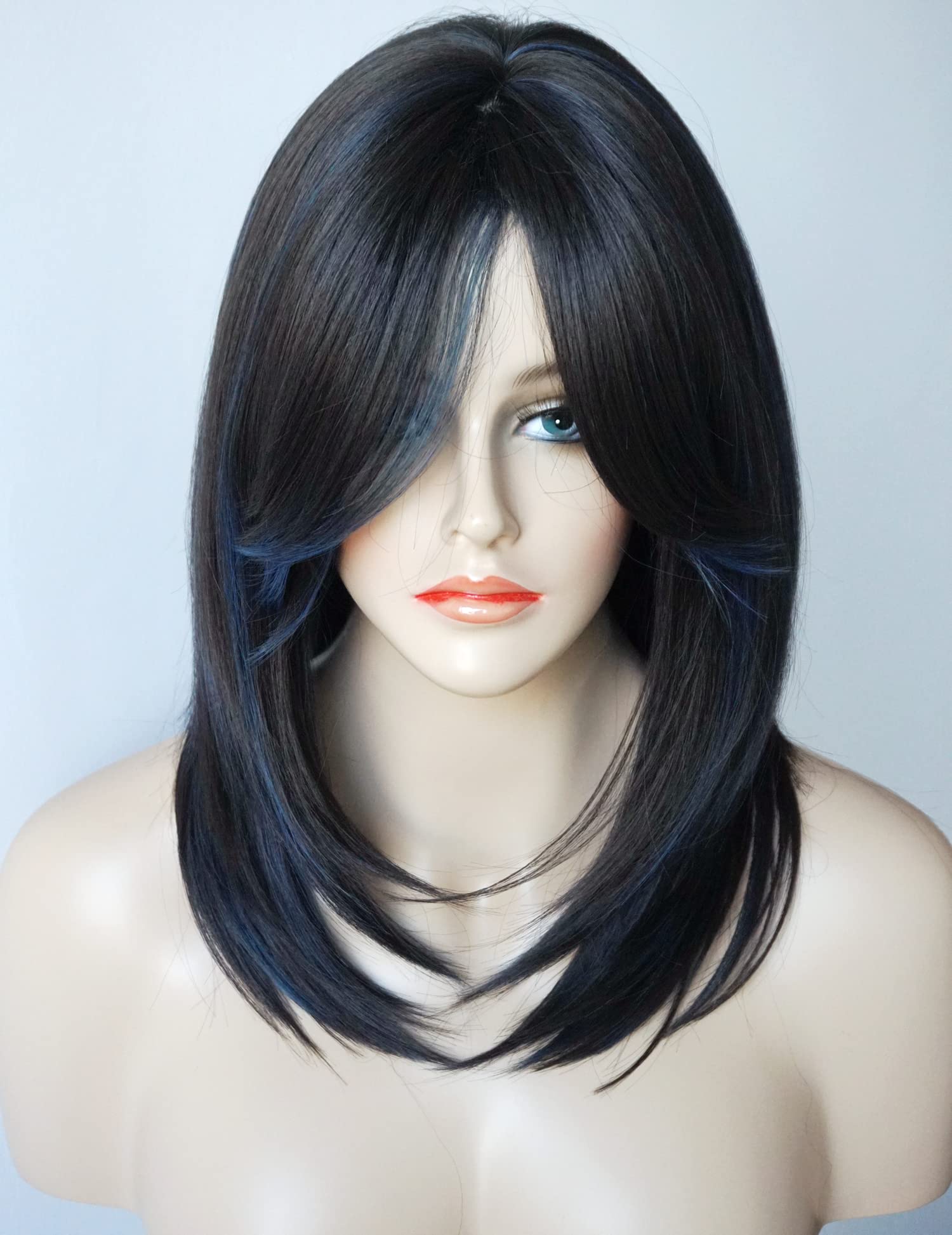 Wignice è una parrucca lunga e nera con frangia scalata, riccioli fluenti e stile naturale con punte morbide e sfumate. Il colore nero naturale è molto di moda al giorno d'oggi. Se stai cercando una parrucca con molta lunghezza, Wignice è quella che fa per te. Queste caratteristiche creano un'attaccatura dei capelli dall'aspetto naturale e l'aspetto di una crescita naturale dei capelli. I capelli sintetici pronti da indossare hanno l'aspetto e la consistenza dei capelli naturali. E la trama aperta nella calotta crea una migliore ventilazione, che fornisce più freschezza al cuoio capelluto. È traspirante e leggera per una vestibilità più confortevole.
